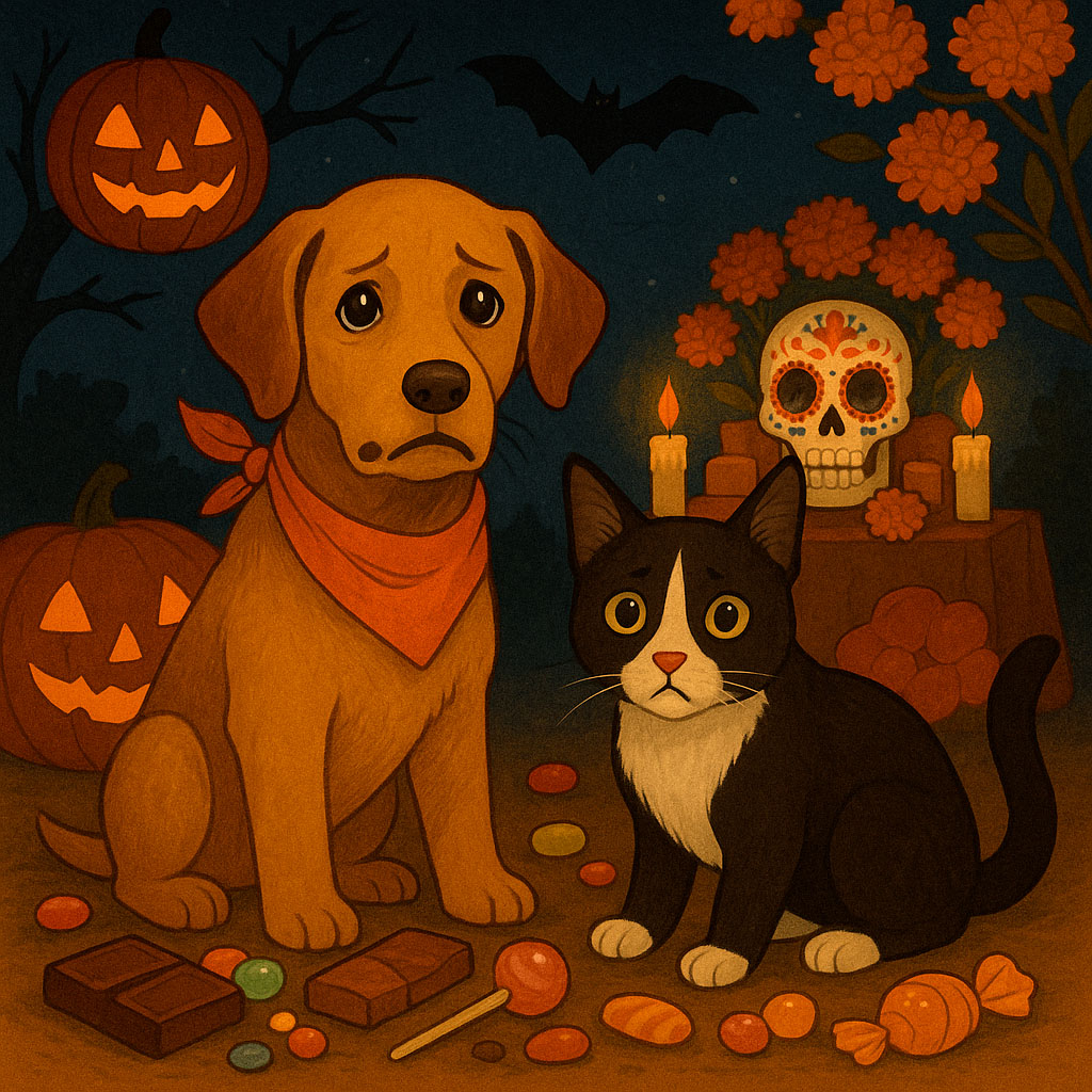 Halloween y Día de Muertos pueden celebrarse sin poner en riesgo la salud ni la felicidad de nuestros amigos de cuatro patas. Con un poco de planificación y sentido común, es posible disfrutar estas fechas manteniendo a perros y gatos seguros. Recuerda que la prevención es clave: esconder los dulces peligrosos, asegurar las decoraciones, identificar a tu mascota, y brindarle un refugio tranquilo del ajetreo. Así, tanto humanos como peludos podrán pasar un Halloween espeluznantemente divertido, y un Día de Muertos lleno de significado, sin sobresaltos veterinarios en el camino. ¡Que tengas unas fiestas felices y pet-friendly!